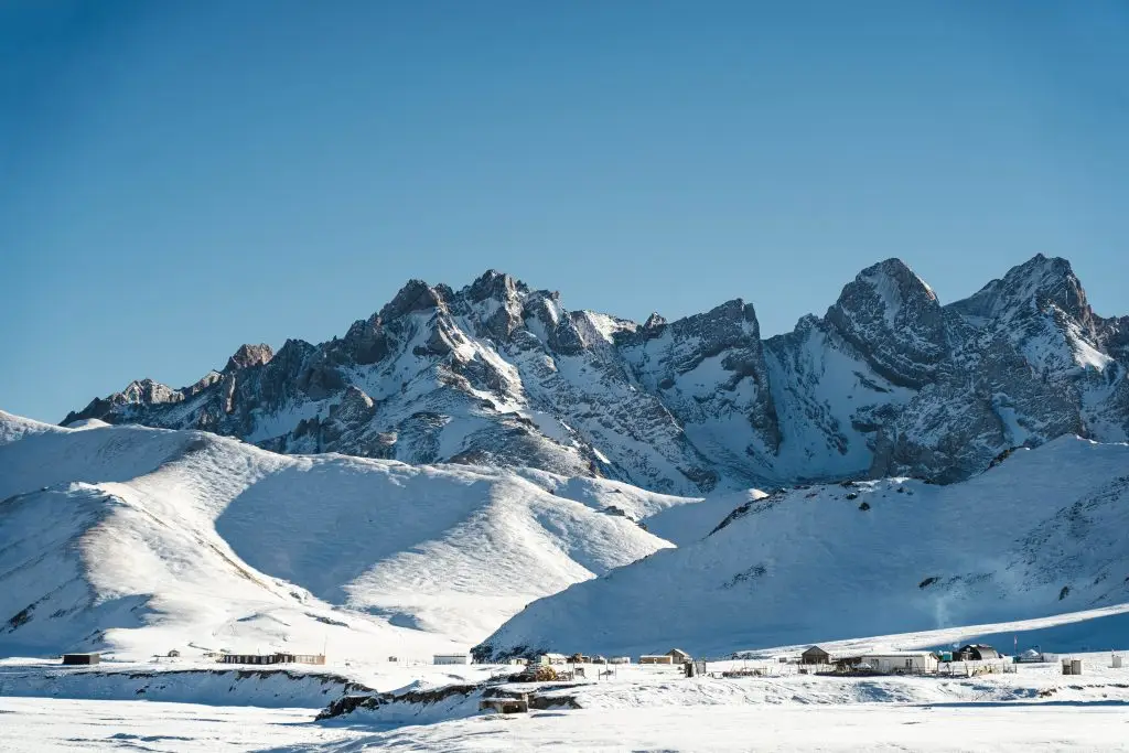 After breakfast, set out for the remote mountain settlement of Inylchek, a journey that takes you deeper into the heart of Kyrgyzstan’s untouched wilderness. The route offers awe-inspiring views of frozen rivers, snow-covered valleys, and jagged peaks towering in the distance. This lesser-traveled path is a true expedition highlight. Upon reaching Inylchek, check in and unwind. As the day fades, head to the nearby natural hot springs for a soul-soothing soak under the open sky—an unforgettable experience surrounded by silence, steam, and snow.